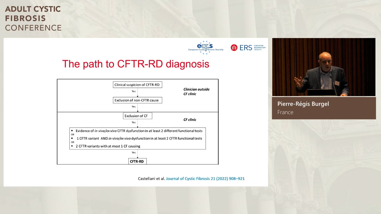 To learn about similarities and differences of CF-diagnosis in the various age groups; to gain knowledge about the optimization of newborn screening; to get to know peculiarities of early diagnosis; to gain knowledge about CF diagnosis in the adults; to become familiar with various biomarkers helping to diagnose CFTR-related disorders