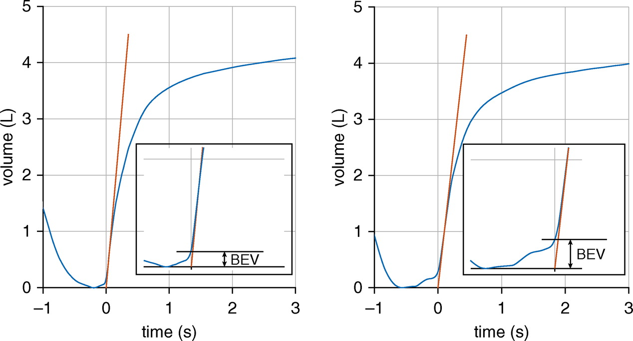 Back-extrapolation (BEV): The volume of air measured before the start of the FVC manoeuvre (Figure 5).